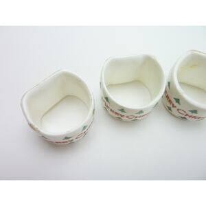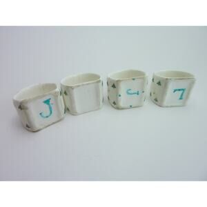 Vintage set of 4 ceramic Christmas napkin rings. Size is roughly 1.5" wide x 1.5" tall. These would look great with red or green napkins. Good used condition with some wear on design. Will be packed with care.
