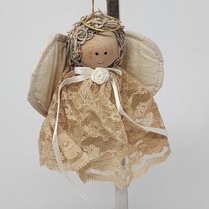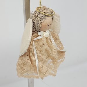 Vintage Christmas Tree Ornament Angel Wooden Lace Holiday Decor Figure