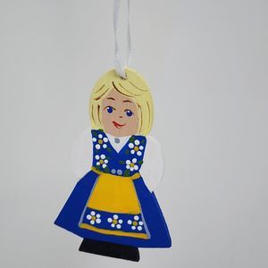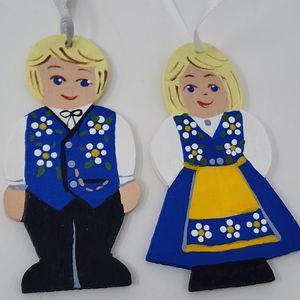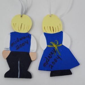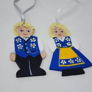 Vintage Christmas Tree Ornament Swiss Couple Holiday Decor Wooden Midway 2004