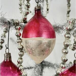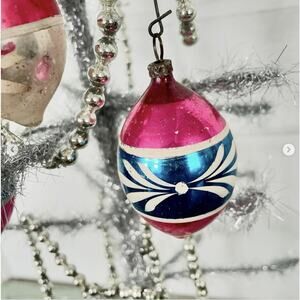 Vintage Christmas Tree Ornaments Teardrop Pink Aqua Blue Glass Poland Set 3
