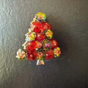 Vintage Christmas Tree Pin Art Glass Aurora Borealis Margarita Stacked Stones
