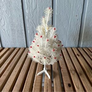 Vintage Christmas Tree Plastic White Red Thrifty's Drugstore Mini Tabletop 60s