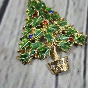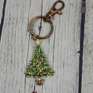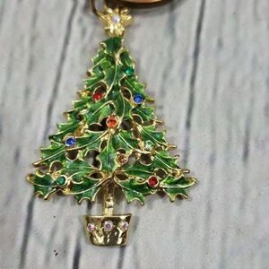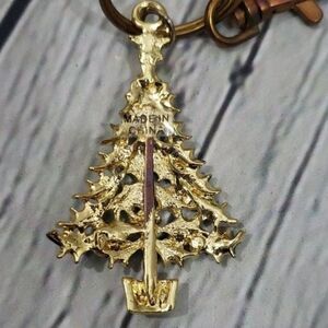 Pre-owned unbranded made in China Christmas tree key ring holder decorated with rhinestones. The tree is super cute! The keyring has some aging/signs of wear, see photos but is still fully functional, it's a bronze tone.