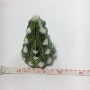Vintage Christmas Tree Salt Pepper Shaker 2" Ceramic Green White Pinecone Design