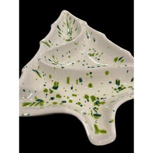Vintage Christmas Tree Speckled HandPainted Ceramic Candy Cheese Party Tray 1977