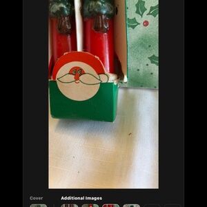 Set of two, 10” taper candles with 4” Xmas trees at bottom. Never burned. Box as shown.