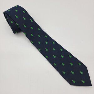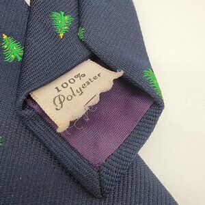 Vintage Christmas Tree Tie Works 100% Polyester Navy Blue Mercer Wenzel Holiday