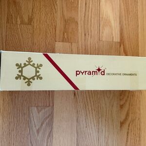 Vintage Christmas Tree Topper Unbreakable Made in Italy Red Silver Glitter. Red with silver glitter design Christmas tree topper. Made in Italy (pics 7 & 8) from the brand Pyramid. It appears to be glass, but it's not. It's unbreakable; light weight so that it will stand straight on the top of a Christmas tree. Excellent condition with no cracks or holes. Comes in original box; the box does have signs of wear as noted in the pictures. Height: 11.5"