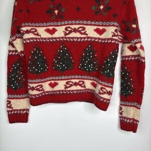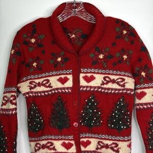 Vintage Christmas Tree Wool Cardigan Sweater Size XS