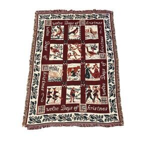 Vintage Christmas Twelve Days of Christmas Tapestry Woven Throw Blanket 48 x 66