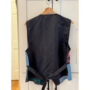 Vintage Christmas Vest Plaid Denim Embroidered Design Size Womens XL Red Green