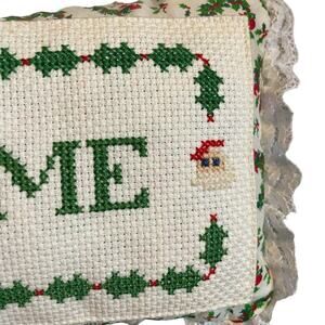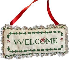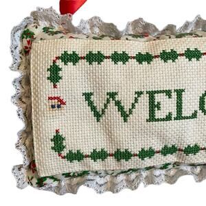 Vintage Christmas Welcome cross stitch pillow wall hanging