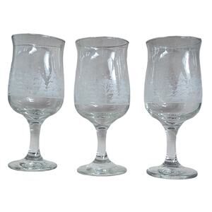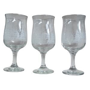 Vintage Christmas Wine Glasses Winter Wonderland Frosted Tulip Hand Blown Set 3