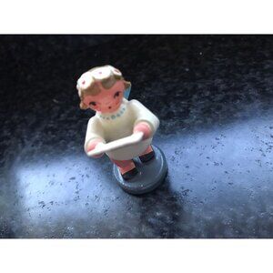 Vintage Christmas Wooden Angel Singing With Sheet Music In Her Hands Erzgebirge Made In Germany