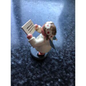 Vintage Christmas Wooden Angel Singing With Sheet Music In Her Hands Erzgebirge