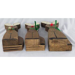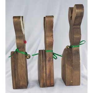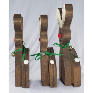 Vintage Christmas Wooden Reindeer Rudolph Family Set Jingle Bell Collar
