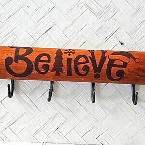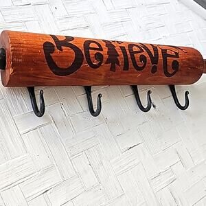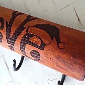 Vintage Christmas Wooden Rolling Pin with 4 Hangers for Pot Holders, Aprons Etc.