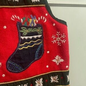 Vintage Christmas Wool Vest, Size Large, Life Style Embroidered
