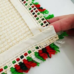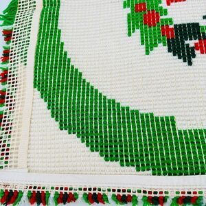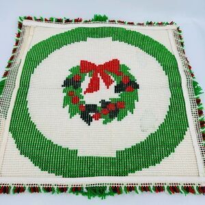 Vintage Christmas Wreath Handmade Latch Hook Rug Wall Hanging Completed Finished Holiday Decor