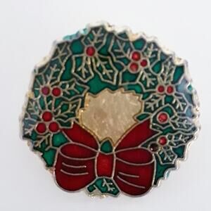 Vintage Christmas Wreath Stud Lapel Pin Red Green