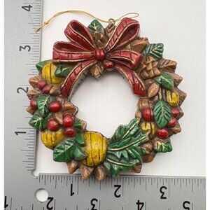 Vintage Christmas Wreath Tree Ornament Rustic with Bow & Berries