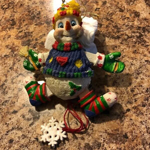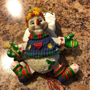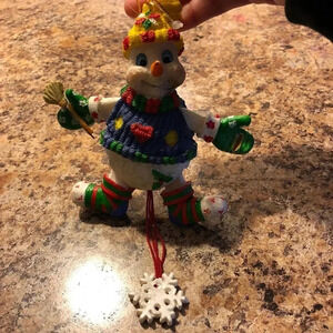 Vintage Christmas ornament . Poet snowman. Good conditions with dark marked on one side of his face. Sell as is