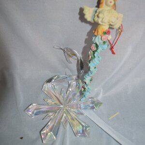 This product is a set of 9 vintage Christmas ornaments that are handmade. Each ornament is uniquely crafted, adding a personal touch to your holiday décor. Perfect for collectors or those looking to add a nostalgic touch to their Christmas tree, these vintage ornaments are sure to be a cherished part of your holiday traditions for years to come. The girl elf can sit on a shelf or hung on a tree.