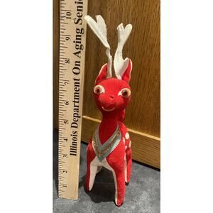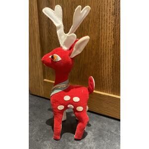 Vintage Christmas red reindeer plush Japan 50s 60s