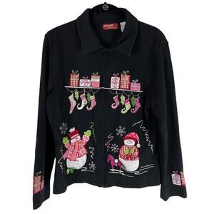 Vintage Christmas snowman gifts knit collared zip front cardigan sweater