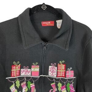 Good preowned condition, 60% cotton, 40% polyester, full zip front, full embroidered front, plain back
