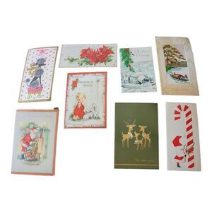 LOT of 8 Used Vintage Santa Sleigh Reindeer Angel Lamb CHRISTMAS CARDS 50’s 60’s.