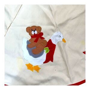 Vintage Christmas Goose & Bear Cottage Retro Tree Skirt 43” Round Cotton READ