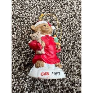 Vintage Christmas Ornament, sleeping teddy bear holding a bear CVS dated 1997