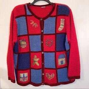 Vintage Christmas Sweater with Patchwork & Embellishments Size XL