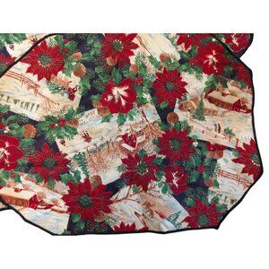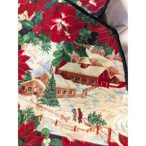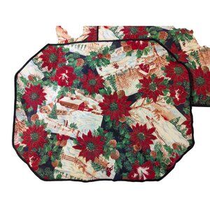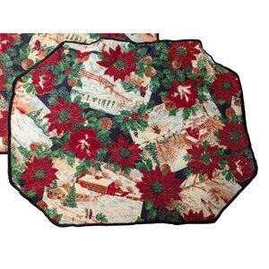 Vintage Christmas-Themed Placemats Set Of 4 With Poinsettia & Winter Scene Desig