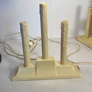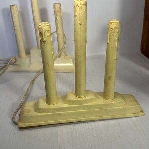 Vintage Christmas Window Electric Plastic Wax Drip Candle Stick Lights. 2 set of 3 Candlebras. UNTESTED