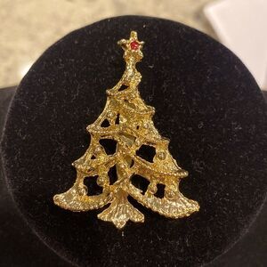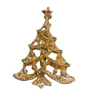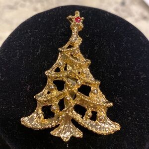 Vintage Christmas tree brooch gold red star gold balls adorning this beautiful brooch.