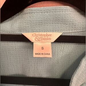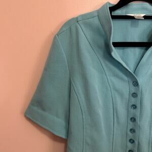 Vintage Christopher And Banks Teal Blue Button Down Short Sleeve Blouse Small