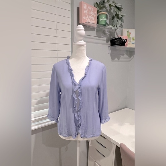 Vintage Y2K Christopher & Banks 100% Silk Ruffle Trim Top