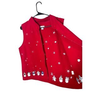 Vintage Christopher & Banks 2004 Full Zip Fleece Christmas Snowman Vest Large