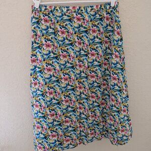 Beautiful mid length floral midi skirt with buttons and elastic waist. In great condition with no defects, size 14P.