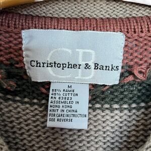 Vintage Christopher & Banks Geometric Floral Embroidered Sweater Granny Size M