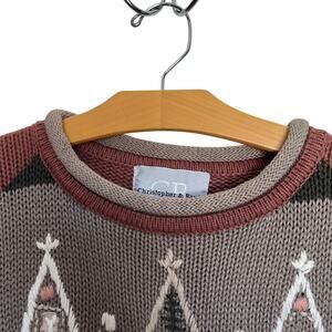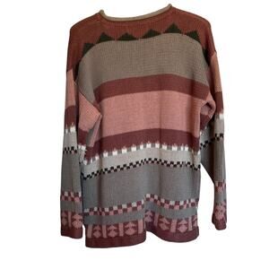 Vintage Christopher & Banks Clay Pink Tan Geometric Floral Embroidered Sweater Granny Size Medium