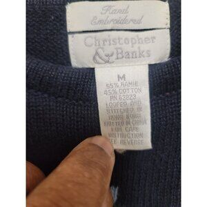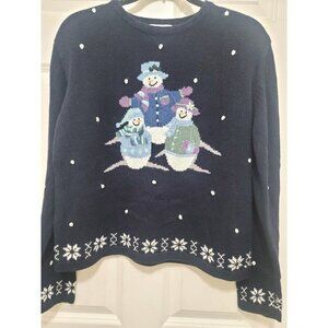 Vintage Christopher & Banks Hand Embroidery Holiday Snowman Sweater Snowflake Pa