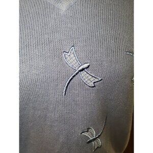 Vintage Christopher Banks Knit Embroidered Dragonfly Short Sleeve Sweater Top