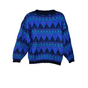 Wrap yourself in timeless style and comfort with the Christopher & Banks sweater. This vintage piece features a captivating geometric pattern in rich colors, crafted from a soft mohair and acrylic blend. Elevate your wardrobe effortlessly with this cozy, eye-catching sweater that combines warmth and fashion seamlessly.