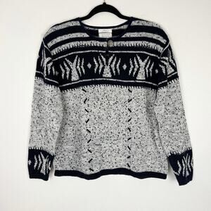 Vintage Christopher & Banks Sweater Navy Blue Chunky Knit Nordic Style Hand Knit