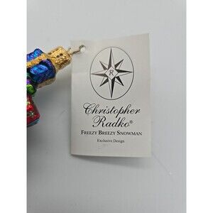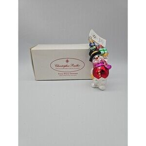 Vintage Christopher Radko Freezy Breezy Snowman Glass Ornament Tag & Box Polland