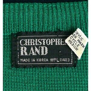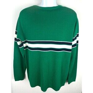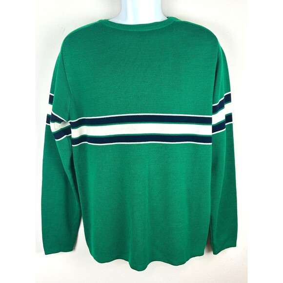 Vintage Christopher Rand Green with White Blue Chest Stripe Pullover Sweater M