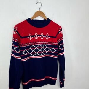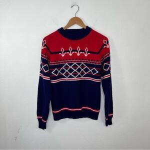 Vintage Christopher Rand Nautical Anchor Red White Blue Sweater Size Large